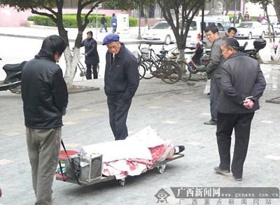廣西街頭現"推尸乞討" "尸體"會抱著錢桶跑(圖)