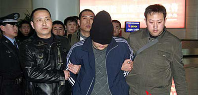 據(jù)了解,3月13日晚上,由“3.08”特大搶劫殺人案專案指揮部派遣的13名辦案民警,乘坐火車趕赴滿洲里。14日上午,民警們從滿洲里公安局看守所將這3名犯罪嫌疑人押出,乘坐飛機(jī)押解回呼。當(dāng)日16時(shí)許,記者來到呼和浩特白塔國(guó)際機(jī)場(chǎng)。記者注意到,3名犯罪嫌疑人的頭上都被蒙上了頭套,無法看出他們的長(zhǎng)相。這3人的個(gè)子并不高,其中1人比較胖,另兩人都較瘦小,能夠看得出他們的年齡并不大。雖然他們打扮成學(xué)生模樣,但是他們的穿著還是引起了大家關(guān)注,因?yàn)樗麄兌忌碇鴯湫碌陌⒌线_(dá)斯牌的上衣和褲子,腳上穿的也是阿迪達(dá)斯牌的鞋子。據(jù)民警講,這衣服是他們逃亡到北京后用搶劫到手的錢購(gòu)買的。