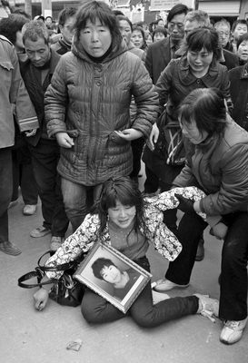 3月13日上午9時,鞭炮清脆炸響,不是因為喜慶而是送喪。運送徐梗榮尸體的面包車從陜西省丹鳳縣醫院駛出又停下。徐的母親及大姐癱坐地上,放聲慟哭。她們不滿縣公安局不兌現承諾:出動一輛警車在前開道。一番僵持,一輛巡警車終于開來,徐梗榮,這個19歲少年的尸體在警車開道下,被送回40公里外的寺坪村家里。
