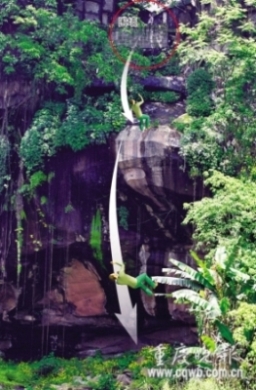 木門內(nèi)是一閑置的小院子,地面長有青苔,除了靠懸崖一邊有堵圍墻外,沒有其他出口。現(xiàn)場沒有看見兒子,鄧希友踩著靠墻的一堆木材站上圍墻,發(fā)現(xiàn)懸崖下有擦掛的新鮮痕跡。鄧希友心中一涼。