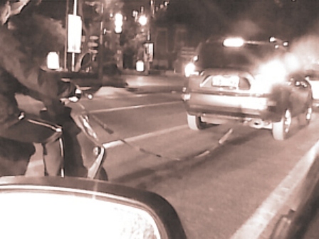 西祠網(wǎng)友“南京市心理危機(jī)干預(yù)中心”告訴記者,26日深夜23:48,他駕車回家路過南京市長江路文化藝術(shù)中心附近的時候,就看到那輛“超級暴強(qiáng)”的電動自行車,一位年輕美麗的女子騎著這輛電動自行車,可能是這輛電動自行車沒電了,所以不得不借力而行,以一根繩子與前面一輛寶馬越野車相連,在快車道上被拖拉著快速前行。駕駛寶馬車的是一位先生,寶馬車?yán)妱榆囈宦沸旭偅^路的司機(jī)看得心拎拎的,紛紛駕車避讓,而電動車上的那位女子似乎膽子頗大,不僅沒有害怕的感覺,臉上還笑嘻嘻的,真讓人佩服。