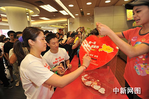 長跑活動結束后,楊威和高崚一起來到附近開設募捐箱的肯德基餐廳,帶頭捐款,并帶動了眾多市民加入該行列。該項募捐活動自今日起將持續兩周。