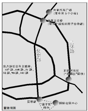 在網友“踩扁小強”的“號召帖”后,網友“黛琳”冷冷地回帖:“昆明站超級多……”“107路國際會展中心這段路超多,108路青年路車站不是一般的多!” “31、32路公交車上一般都是6人以上共同作案,男女皆有,年紀都在30歲到40歲。我見過最多的時候是10個小偷偷一個人。他們一般把被偷者圍在他們范圍內,然后1—2人下手,其他人掩護。慣用工具是刀,且刀上涂有麻藥。有一老者是摸到自己身上濕濕的才發現肚子已被劃傷,錢也被偷了”……一時間,網友紛紛跟帖發表各自了解到的小偷分布情況。