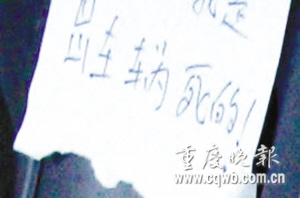 江北CBD、重慶市大劇院右側空壩,時常有人駕車到此游玩。昨日下午,一妙齡女子被發現橫尸于空壩上停放的一輛小轎車內,該車內排擋桿旁還有一張神秘紙條,上面寫著“我是出車禍死的。”據目擊者稱,這輛小車在此處停了有3天。