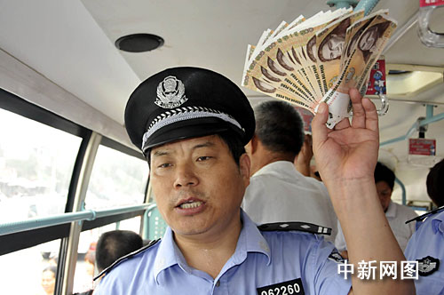 中新網商丘8月4日電 (記者 齊永 通訊員 白金中)買“法郎”便能保佑生個兒子,從而誘騙乘客購買被稱為“法郎”的秘魯幣,乘客稍有不從,便實施搶劫。日前,商丘——周口公路長途客車上6名男子正在上演這一出戲時,被便衣民警抓個正著。