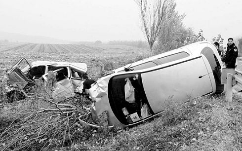 10月26日上午9點20分左右,在沈丹高速公路20公里處沈陽方向發生一起交通事故,一輛標致307轎車與一輛同向行駛的微型面包車撞在了一起后,一同沖下路基闖入了高速公路東側的田地中。車禍造成微型面包車上的正副駕駛兩人死亡,其余4人不同程度受傷。死亡的是夫妻倆,從本溪回昌圖老家奔喪,沒想到在路上發生了這樣的不幸。