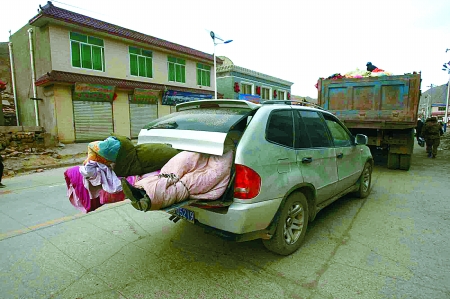 由于地震后身上沒帶多少錢,3個重慶男人為了送亡妻回老家,從各自倒塌的房間里找到幾張10元、20元的鈔票,又找人借了一部分,才湊齊了回家的車輛過路費,以便妻子能順利落葉歸根。