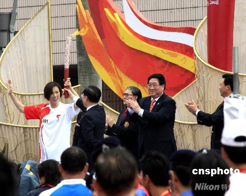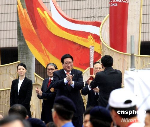 二日上午十時二十五分左右,香港首枚奧運金牌得主、退役帆板運動員李麗珊從香港特首曾蔭權手中接過“祥云”火炬,沿著紅地毯跑出香港文化中心露天廣場,北京奧運圣火在“東方之珠”香港的傳遞正式啟動……