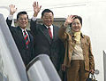 圖:江丙坤完成“經貿之旅、緬懷之旅”揮手告別北京
