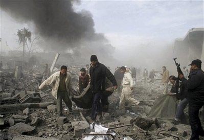 第十八天 從13日凌晨開始,以色列空軍、海軍和地面火炮向加沙城發動了開戰以來的最猛烈襲擊,戰斗最激烈的地點集中在加沙城西南的哈瓦地區和加沙城南部的扎伊通地區。目前已造成巴方952人死亡,4260人受傷。以國防部長巴拉克表示,以軍正在繼續展開“鑄鉛行動”。不過,巴以雙方未放棄停火談判,以國防部高級官員吉拉德擬于近日再度赴開羅磋商,哈馬斯也可能在有保障情況下接受埃及停火方案。【詳細】