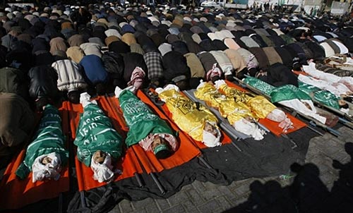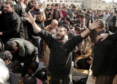 第六日 哈馬斯領導人尼扎爾•拉揚的住所遭到以軍轟炸,他本人及多名家人喪生。這是以軍空襲加沙以來首次炸死哈馬斯高級領導人。總死亡人數則上升至410人,2000多人受傷。當天,以色列國防部公布了“鑄鉛行動”的最新戰報,稱已摧毀了哈馬斯位于加沙的450處據點,有25處是在新年第一天的襲擊中擊毀的。另外,聯合國安理會召開會議,就呼吁加沙地帶實現停火的決議草案進行討論,但因英美反對而未獲通過。【詳細】