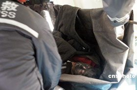 救援人員抬出一具遇難者遺體