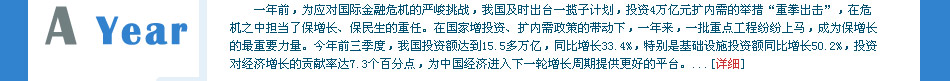 得益于中央“保增長、擴內需、調結構、惠民生” 一攬子計劃和政策措施的持續作用,從2008年一季度到2009年三季度。 [詳細]