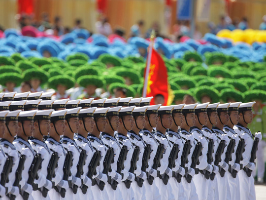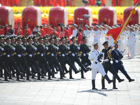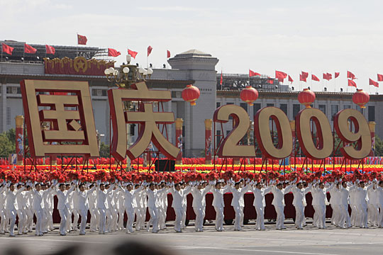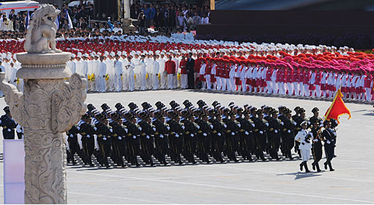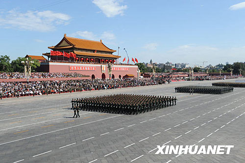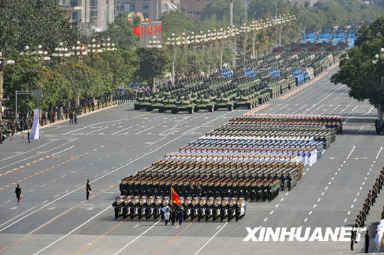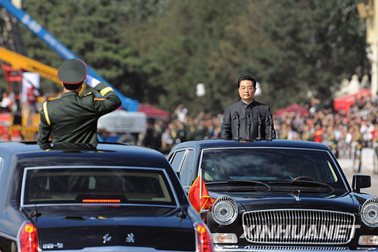 國慶閱兵:胡錦濤乘紅旗車檢閱