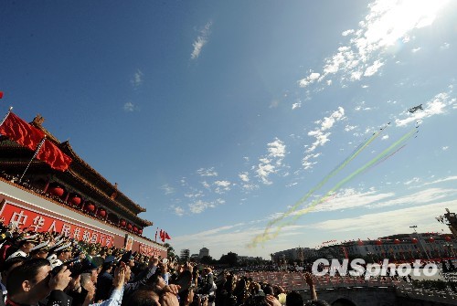 國慶大閱兵:空中梯隊飛過天安門廣場