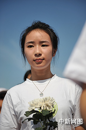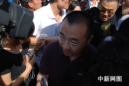 圖:中國傳媒大學學生手捧白花送別師兄羅京