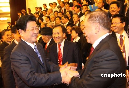 圖:王兆國在人民大會堂接見全國“僑界十杰”