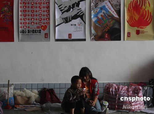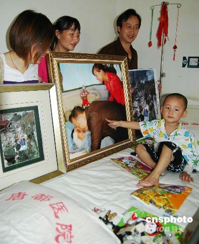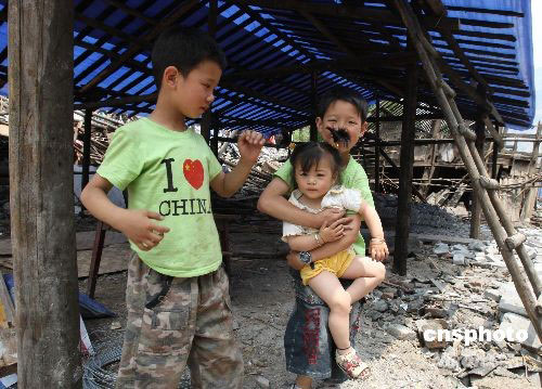 圖:地震災區戀“家”的雙胞胎