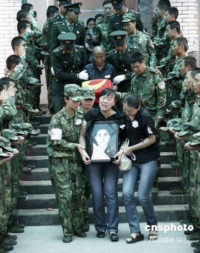 圖:抗震救災烈士張鵬魂歸故里