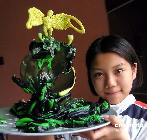圖:上海學生為四川英雄張米亞創作雕塑