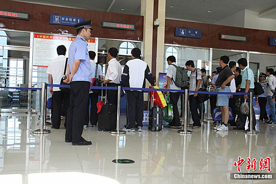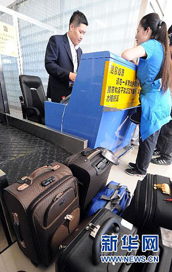 圖:伊春機場乘客在辦理登機手續