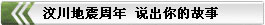 1年過去了,相比災(zāi)難,更讓我們銘記的是災(zāi)難面前中國人的堅(jiān)強(qiáng)、勇氣和愛。請寫下您和汶川地震的故事,傳遞“萬眾一心、眾志成城,不畏艱險、百折不撓,以人為本、尊重科學(xué)”的抗震精神……