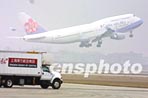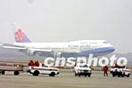 載有春節返鄉探親臺商及其眷屬"華航"包機飛離浦東機場