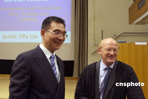 世界頂級經濟學講壇之一的劍橋大學“馬歇爾講座”每年邀請一位世界著名經濟學家擔任主講人,北京大學中國經濟研究中心林毅夫教授作為首個中國學者今年應邀主講。中新社發 李鵬 攝