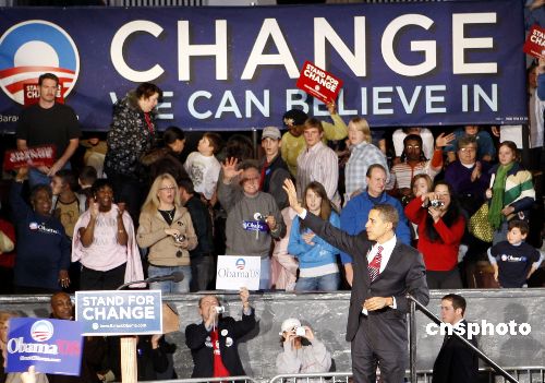 美國愛荷華州1月3日拉開2008年大選初選的序幕,人氣正旺的民主黨參選人奧巴馬,2日在艾奧瓦州西達拉皮茲市爭取選民支持。中新社發 李靜 攝