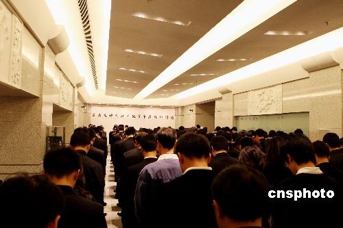 當地時間5月19日凌晨2時28分,中國駐紐約總領館全體工作人員為在四川地震中遇難的同胞默哀三分鐘,表達沉痛哀悼之情。中新社發 譚宏偉 攝