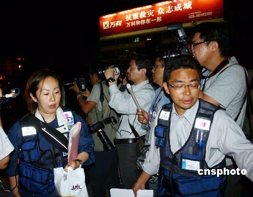 5月20日晚10點58分左右,日本醫(yī)療救助隊一行23人抵達成都,他們將很快投入到傷員救治工作中。圖為日本醫(yī)療救助隊抵達成都機場。