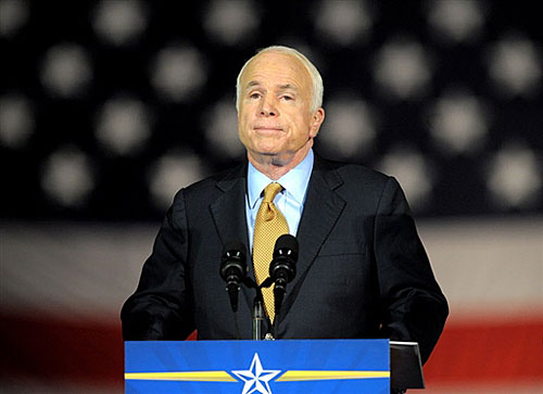 美東時間四日晚十一點二十分,共和黨總統(tǒng)候選人麥凱恩在亞利桑那州鳳凰城面對選民發(fā)表講話,承認其敗選,并向奧巴馬當選美國下屆總統(tǒng)表示祝賀。