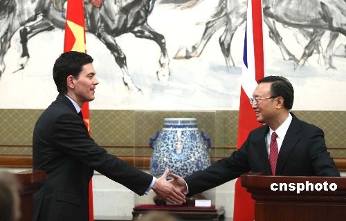 圖:楊潔篪與英國外交大臣米利班德舉行會談
