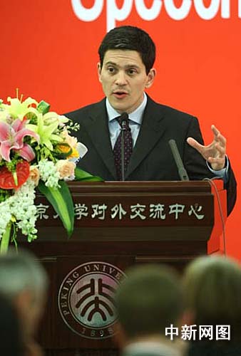2月29日上午,正在訪華的英國外交大臣米利班德在北京大學國際關系學院發表演講。盛佳鵬 攝