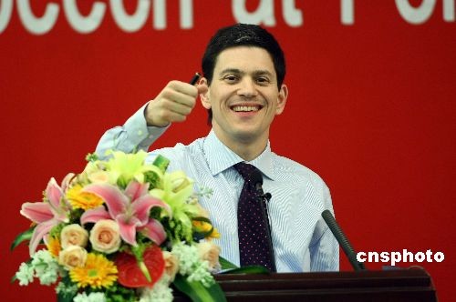 2月29日,英國外交大臣米利班德在北京大學國際關系學院發表演講。中新社發 盛佳鵬 攝