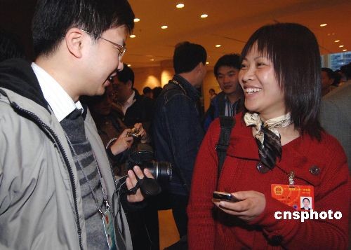 圖:中國農民工代表胡小燕抵京參加“兩會”