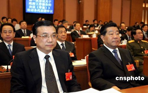 3月11日,十一屆全國人大一次會議主席團在北京舉行第二次會議,賈慶林、李克強等出席。中新社發 任晨鳴 攝