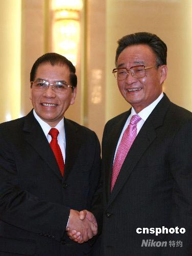 5月30日,中共中央政治局常委、全國人大常委會委員長吳邦國在北京人民大會堂會見越南共產黨中央委員會總書記農德孟。中新社發 廖文靜 攝