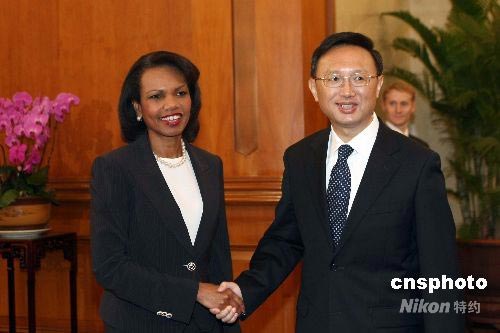 6月29日,中國外交部部長楊潔篪在北京釣魚臺(tái)國賓館與美國國務(wù)卿賴斯舉行會(huì)談。中新社發(fā) 盛佳鵬 攝