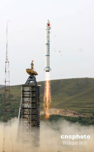 北京時間9月6日上午11時25分,中國“環境與災害監測預報小衛星”(簡稱“環境減災”)A、B衛星以一箭雙星方式,在太原衛星發射中心由“長征二號丙”運載火箭成功發射升空。中新社發 孫自法 攝