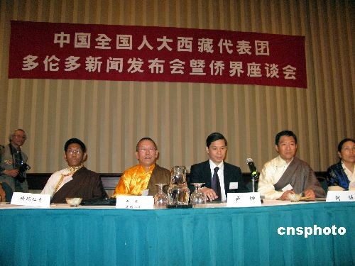 當(dāng)?shù)貢r間三月二十日,結(jié)束在美國的訪問后,由五位在西藏成長和生活的全國人大代表組成的中國全國人大西藏代表團赴加拿大繼續(xù)訪問。在加拿大機場受到當(dāng)?shù)馗鹘缛耸康臒崃覛g迎。二十日抵達(dá)多倫多數(shù)小時后,代表團舉行記者會,接受二十多家媒體四十多名記者的集體采訪,詳細(xì)回答記者的提問。中新社發(fā) 孫宇挺 攝