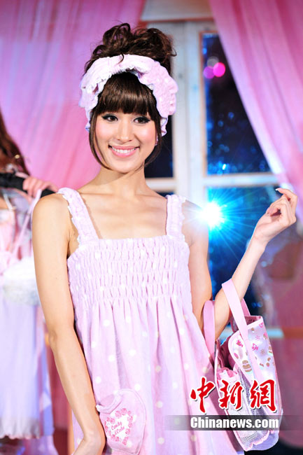 近日,上海,香港名模Angelababy為日本某著名內衣品牌進駐中國火熱助陣,在現場100多家國內外知名媒體的共同見證下,性感模特穿著本季新品依次驚喜亮相。粉色的甜蜜情懷、黑色的性感蕾絲、紫色的夢幻情懷、豹紋的狂野浪漫…知名設計師帶來的令人眼花繚亂的潮流設計,掀起一場有關“可愛 快樂 性感”的夏日狂歡。中新社記者 李學仕 攝