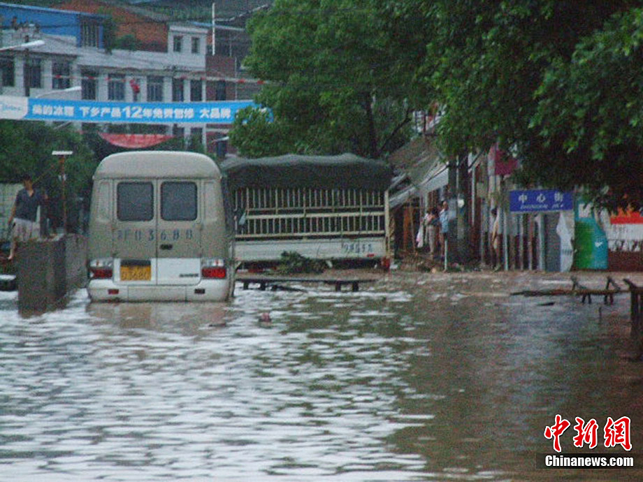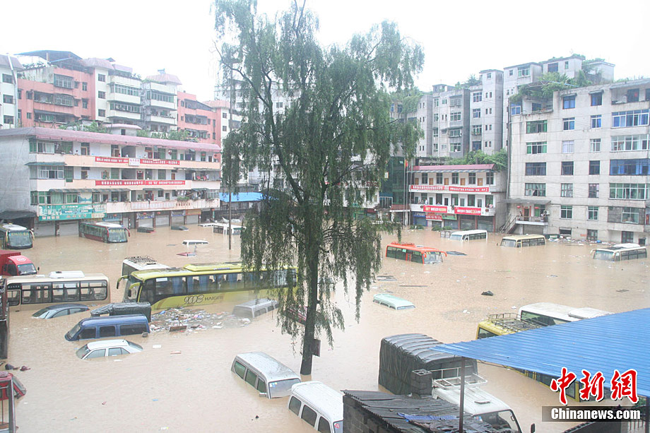 重慶酉陽遭暴雨襲擊 停車場被淹