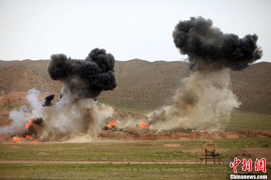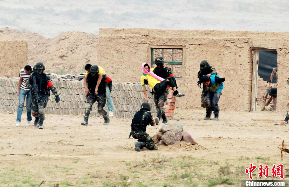 7月9日,友誼-2010”中巴反恐聯訓在蘭州軍區某訓練基地舉行實兵實彈演練,演練設計的背景是,對潛入中巴邊境地區實施襲擊破壞的國際恐怖分子進行聯合打擊。圍繞“邊境地區山地聯合反恐作戰”這一課題,演練了遠程投送、偵察監視、立體封控、精確打擊、解救人質、搜剿圍殲6個行動。這次反恐聯演的一個亮點,就是首次空地協同,聯合打擊,由地面反恐特戰人員引導殲轟機、武裝直升機實施空中火力突擊,采取精打要害的戰法,以建制內的火器對恐怖分子營地重要目標實施火力打擊。中新社發 杜洋 攝