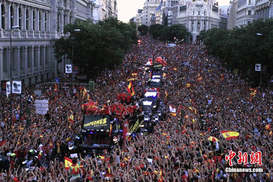 西班牙隊凱旋歸國 數萬球迷游街迎英雄