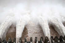 7月19日下午,三峽大壩開啟7個泄洪深孔和2個排漂孔泄洪。 7月19日至20日上午,三峽水庫將迎來峰值接近每秒7萬立方米的洪水,是三峽工程建成以來的最大規(guī)模的洪水。據(jù)了解,19日下午2:00,三峽庫區(qū)入庫流量已達(dá)每秒66500立方米,出庫流量達(dá)每秒38100立方米;到17:00,壩前水位147.74米。 程敏 攝 (圖片來源:新華網(wǎng))