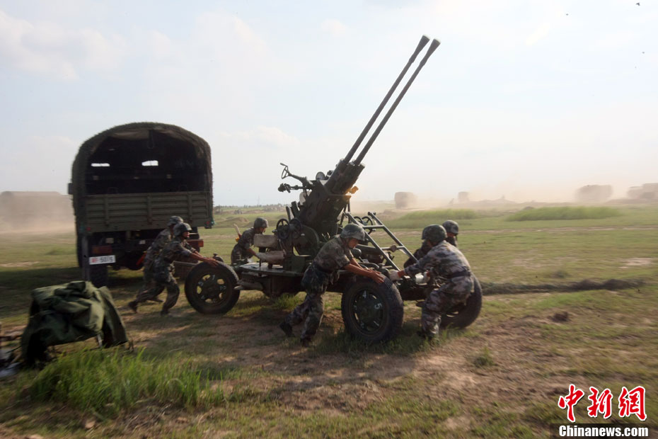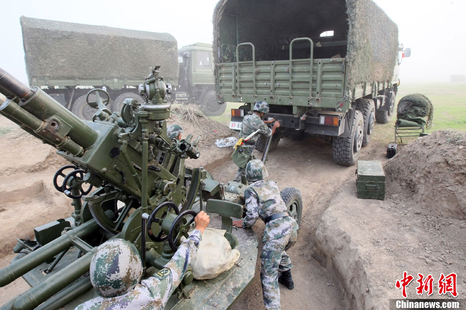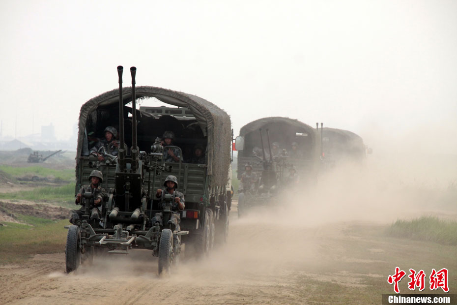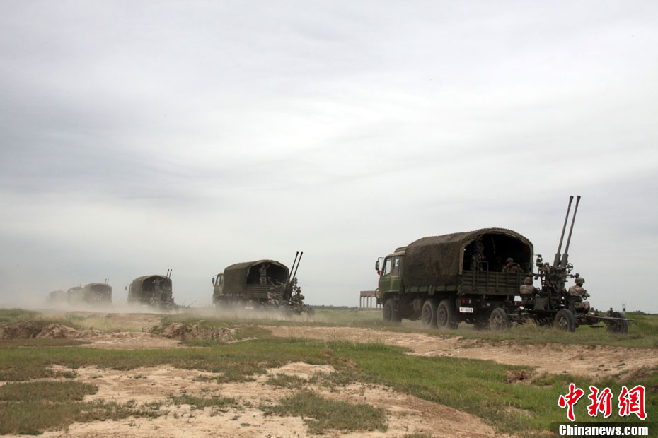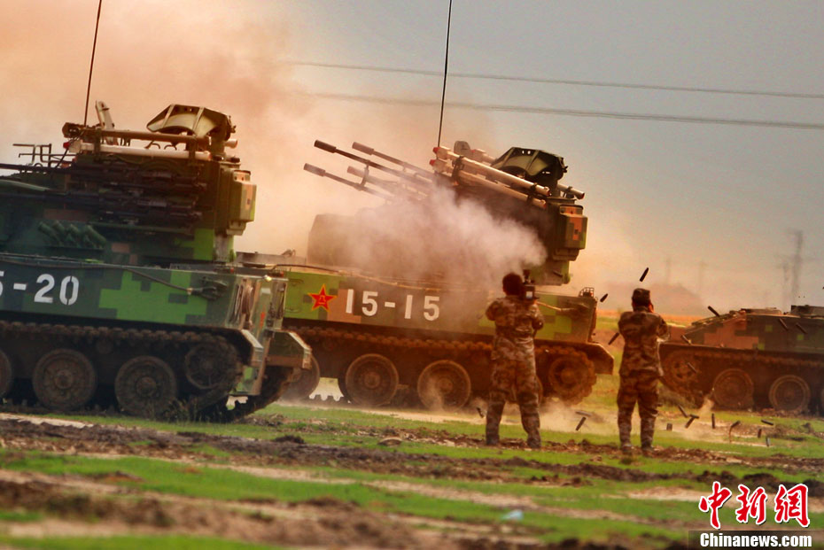擔負“前衛—2010”陸軍防空部隊“單元合成”演練任務的駐濟某防空旅到達演習預定地域后,不顧長途行軍的疲勞,迅速投入到演習任務的各項演練中,并對前期的戰術演練效果反復檢驗和完善,對某新型指揮系統進行聯網預演,為演習的順利進行做好了一切準備。行進間射擊演練。賈愚 王侃 攝