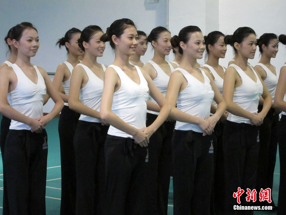 日前,500多位來自全國各地的“亞運天使”在南方醫科大學順德校區校園中,為亞運賽場上的精彩亮相緊張辛苦的訓練。廣州亞運會期間,頒獎禮儀團隊將完成476場頒獎儀式,合計頒發3989枚獎牌。中新社發 柯小軍 攝