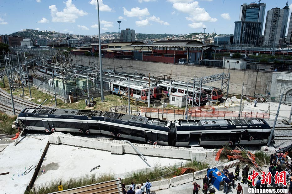8月6日,意大利那不勒斯附近的一列火車發生出軌事故,造成1人死亡,30余人受傷。在事故現場,救援人員在緊張工作。