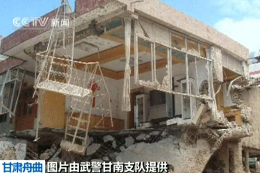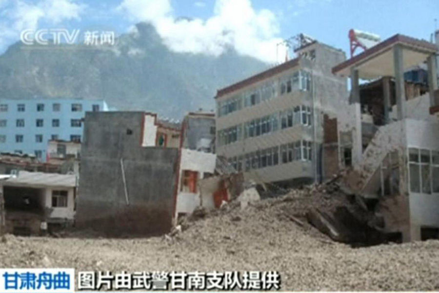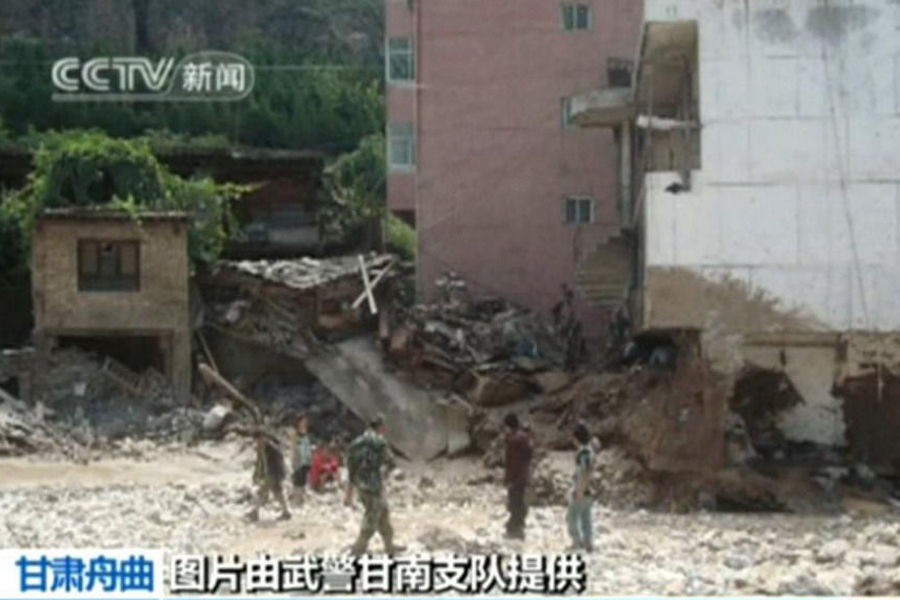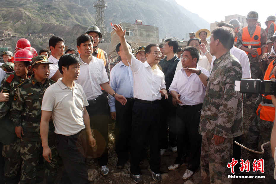 8月8日凌晨,溫家寶總理下午5點左右已抵達甘肅舟曲三眼村救災現場。 中新社發 康元彬 攝 圖片來源:cnsphoto